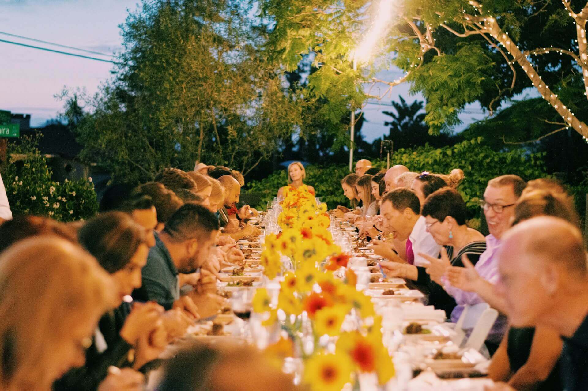 Je wilt geen donkere zaal met vaste tafelschikking en een DJ in de hoek. Je ziet liever lange tafels onder lichtslingers, foodtrucks op het gras en gasten die met een drankje in de hand rondlopen terwijl kinderen spelen.
